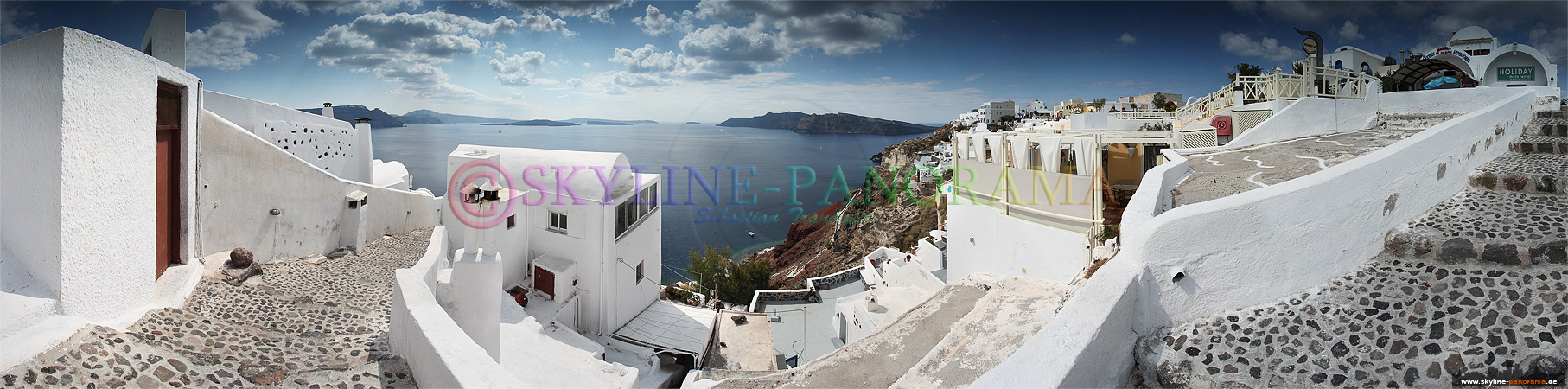 Bilder Santorini – Oia bietet unzählige malerische Perspektiven, die sich wunderbar für das Panoramaformat eignen.