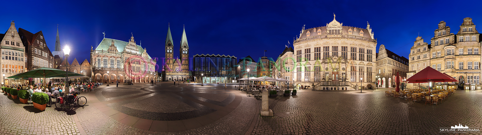 Bilder Bremen – Der historische Bremer Marktplatz als 360 Grad Panorama in der Dämmerung aufgenommen.